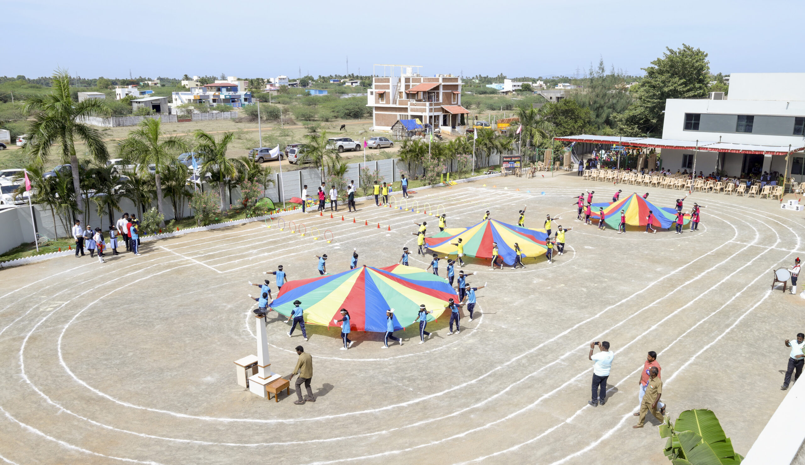 PLAY GROUND Park is for kindergarten and primary kids to play. Cricket net is fixed and coaching is given by the Cricket Coach. We have a spacious playground to train physically and to improve health fitness. PARK